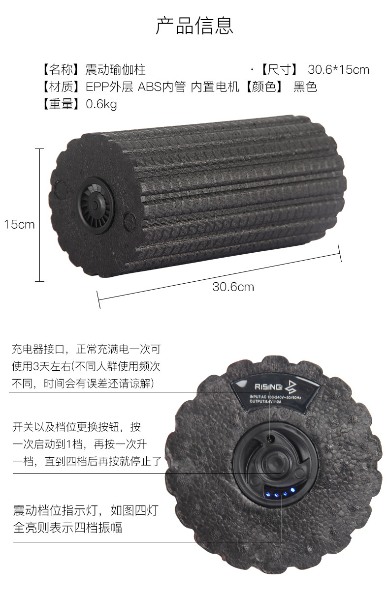 锐思(RISING)电动瑜伽柱泡沫轴肌肉放松滚轴瘦腿泡沫滚轴健身瑜伽狼牙棒按摩轴直径15cm,长度31cm