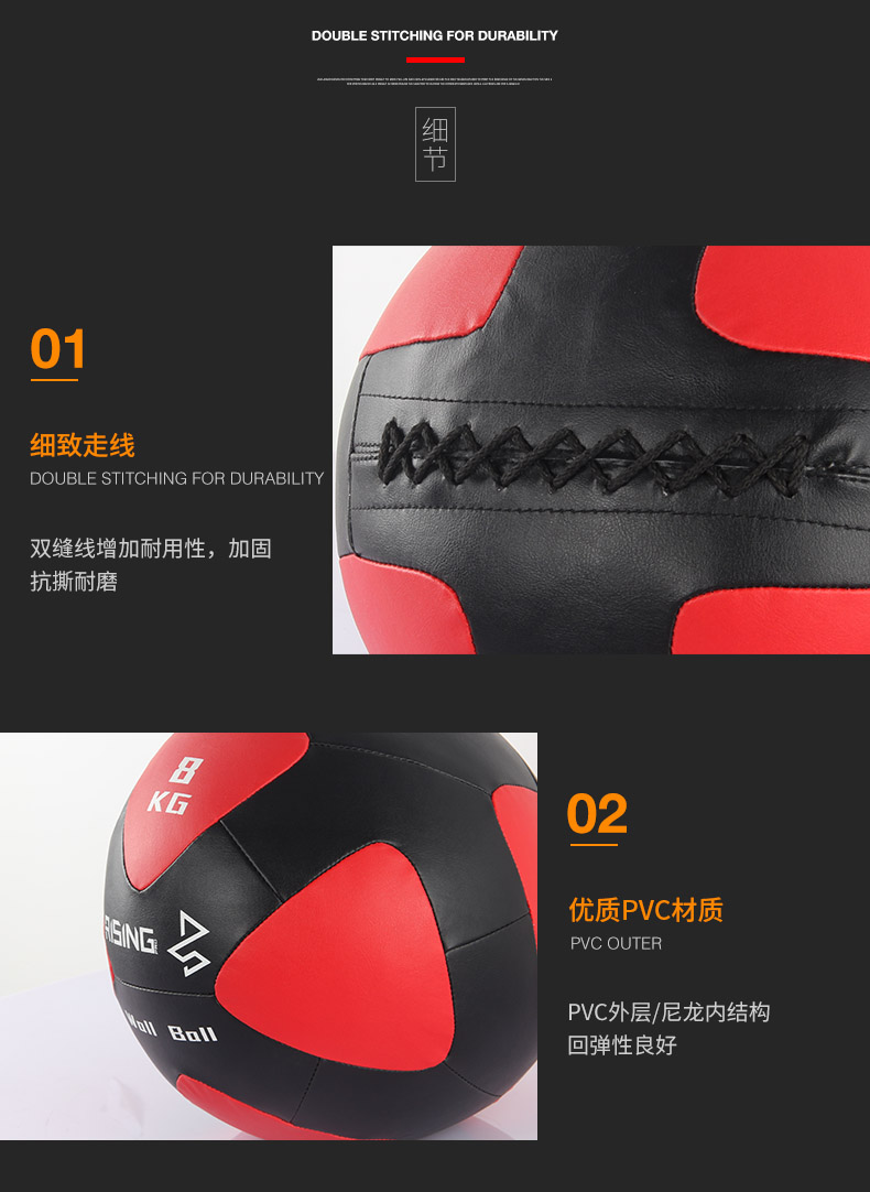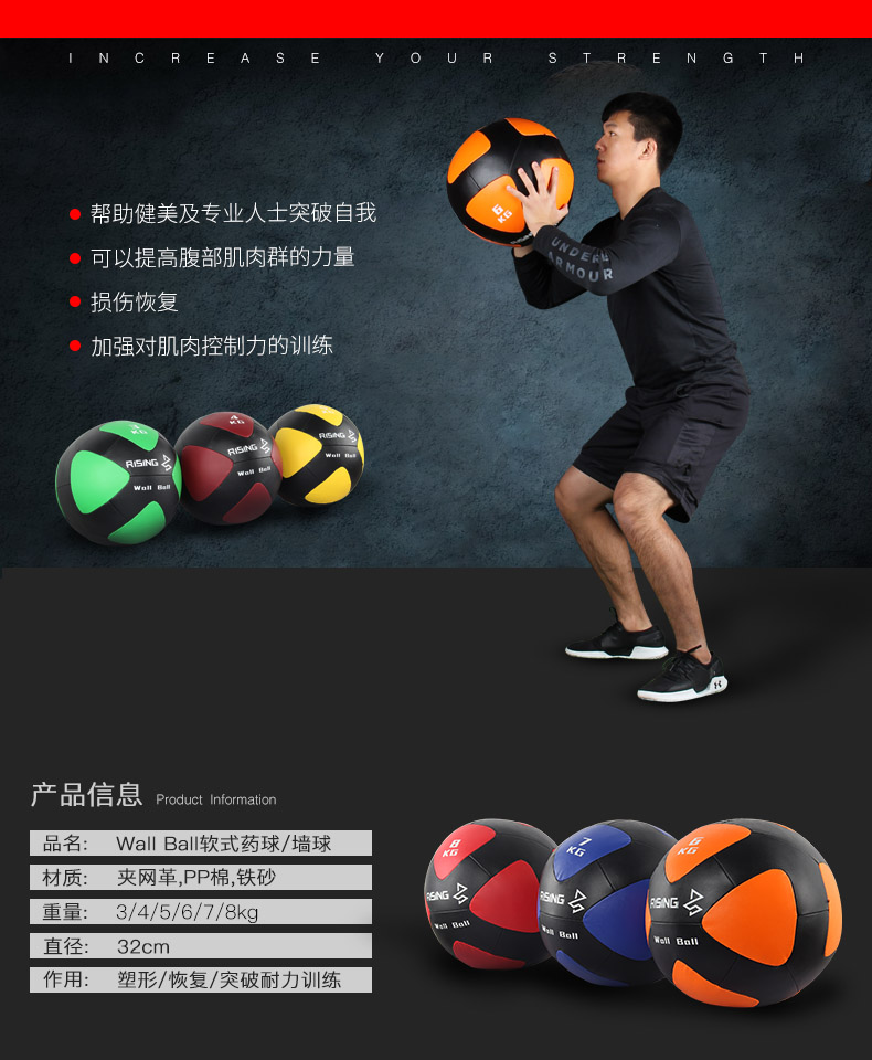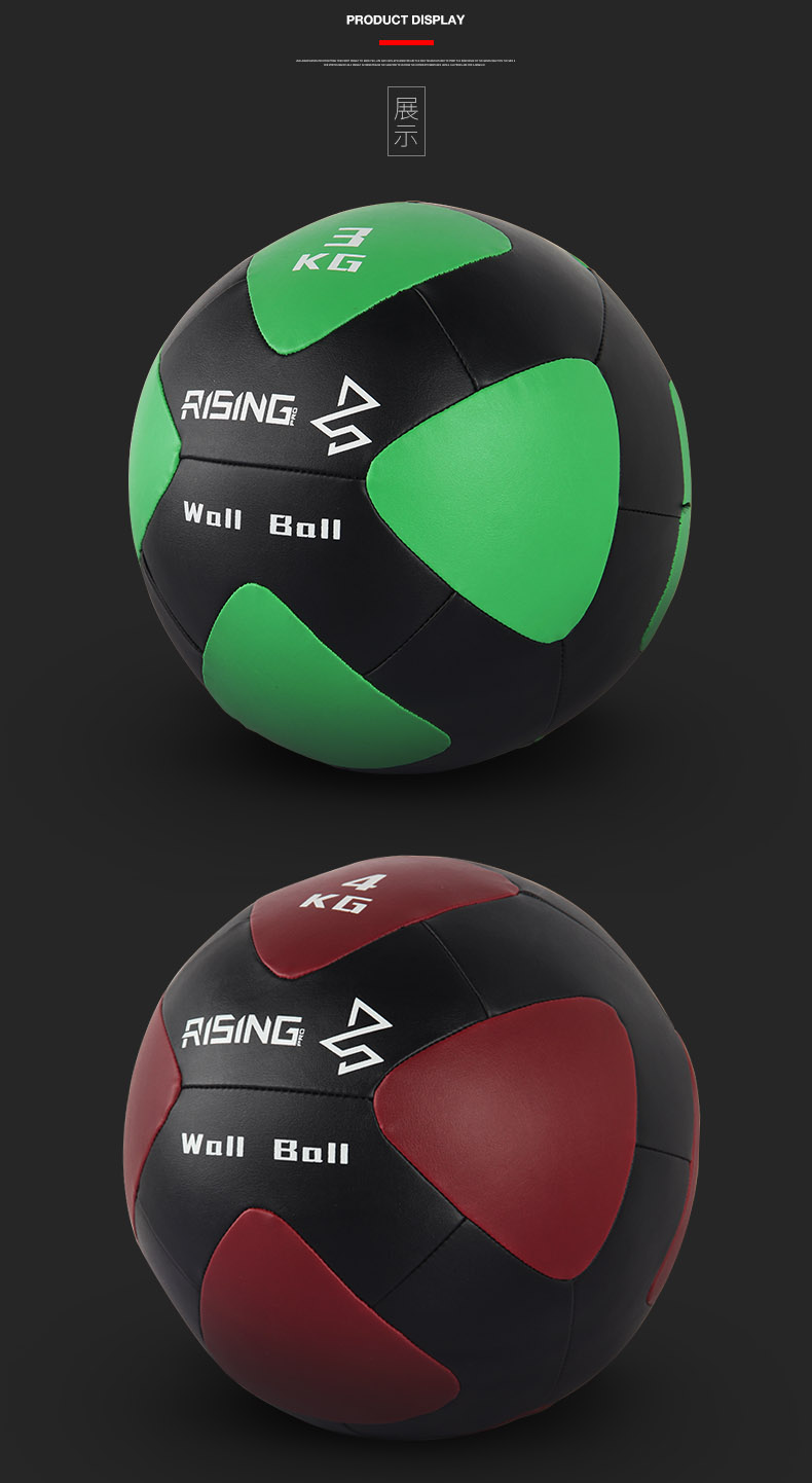 RISING锐思PRO版彩色皮革球壁球药球无弹力力量爆发训练球规格:3、4、5、6、7、8kg