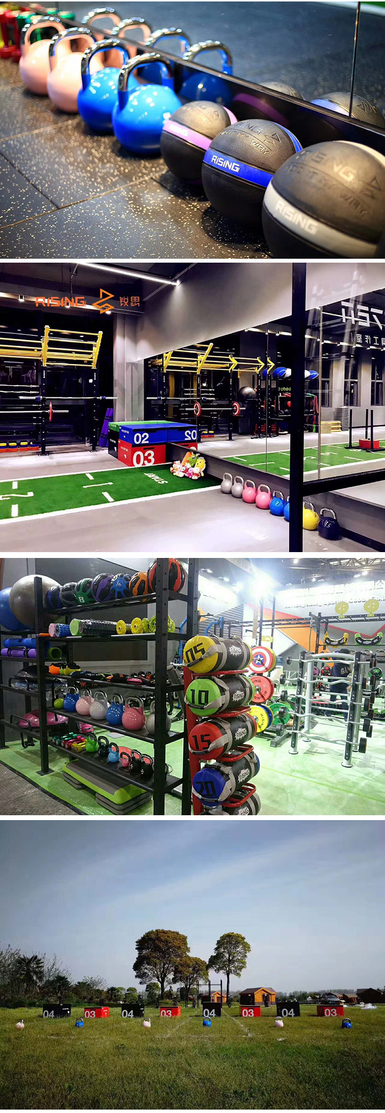 锐思品牌系列有核心训练、力量爆发、 敏捷、 平衡负重、柔韧放松、 操课训练、地胶草坪辅助配套、有氧训练、 综合训练架、 商用力量器材等十大系列产品。
