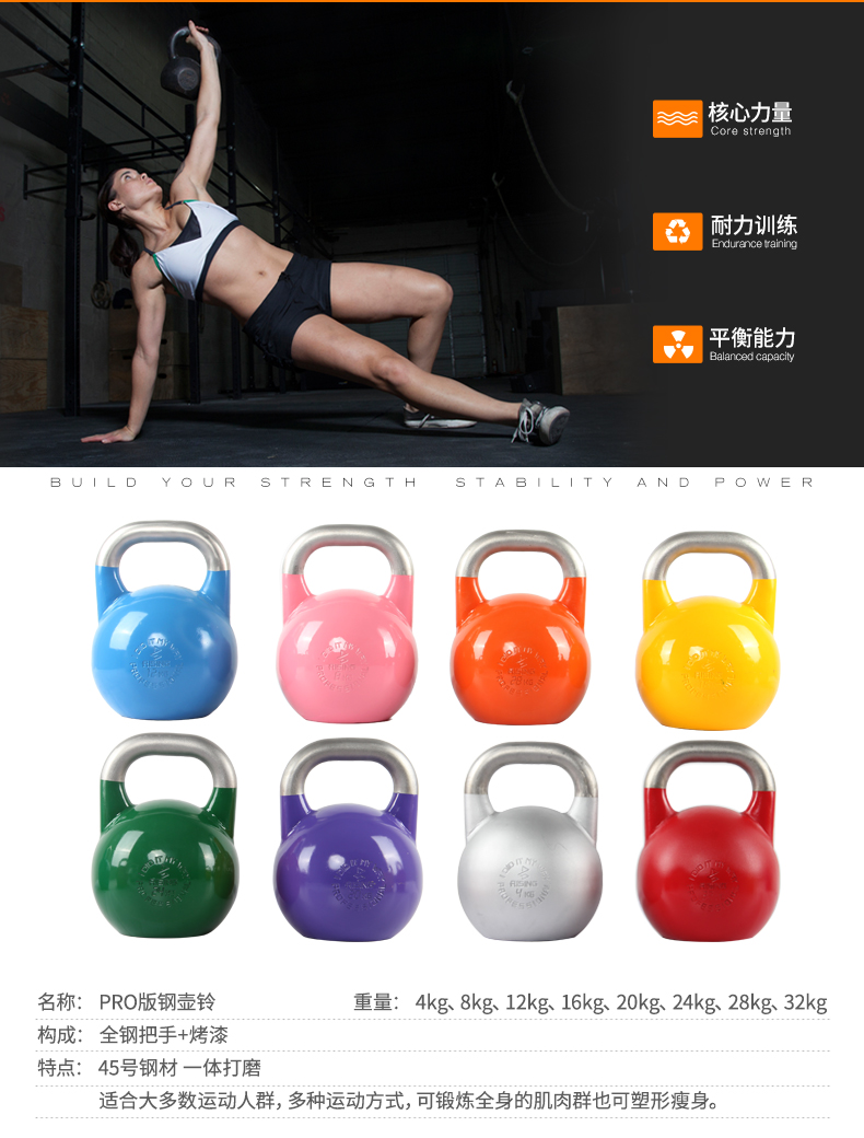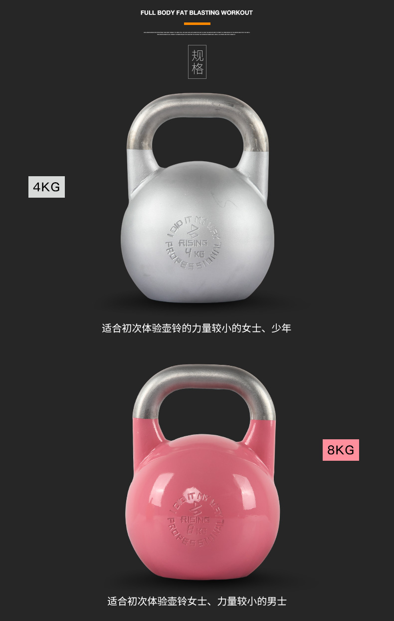 RISING锐思健身钢壶铃 PRO版男士运动提壶哑铃
