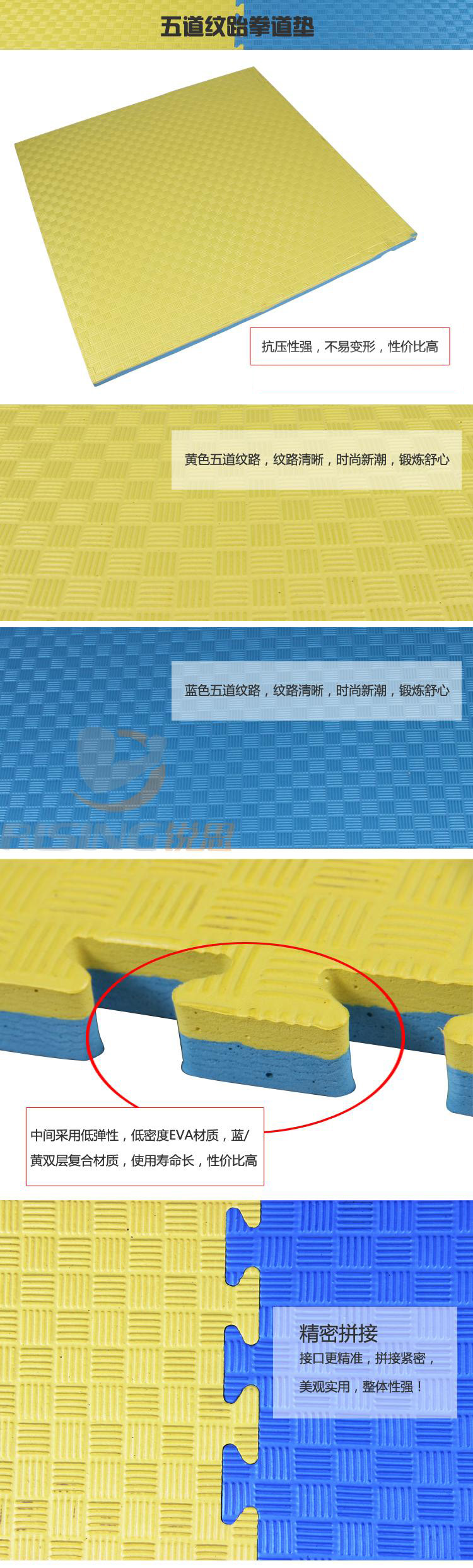 长度1米,宽度1米,厚度25毫米高密度专业五道纹跆拳道垫