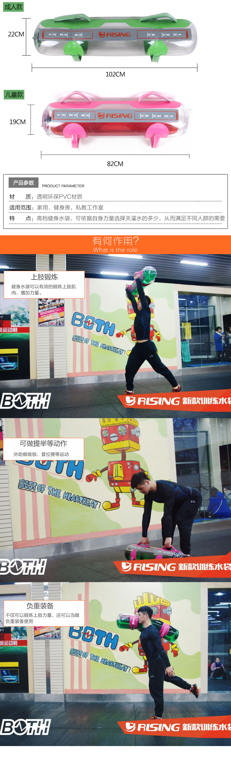 RISING锐思 健身水袋 可调节负重训练 力量训练 负重装备 不稳定训练