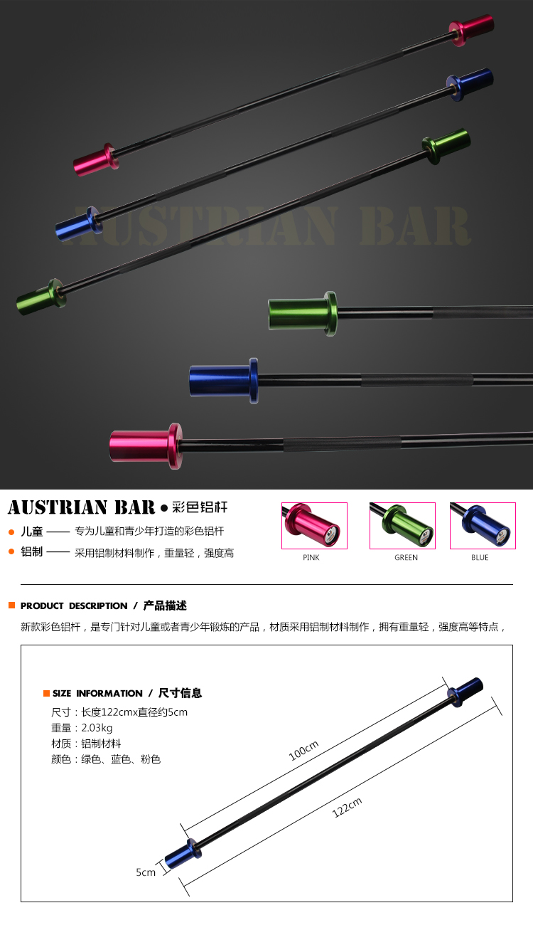 RISING锐思儿童彩色铝杆 小号奥杆 铝合金举重深蹲杆 大孔径杠铃