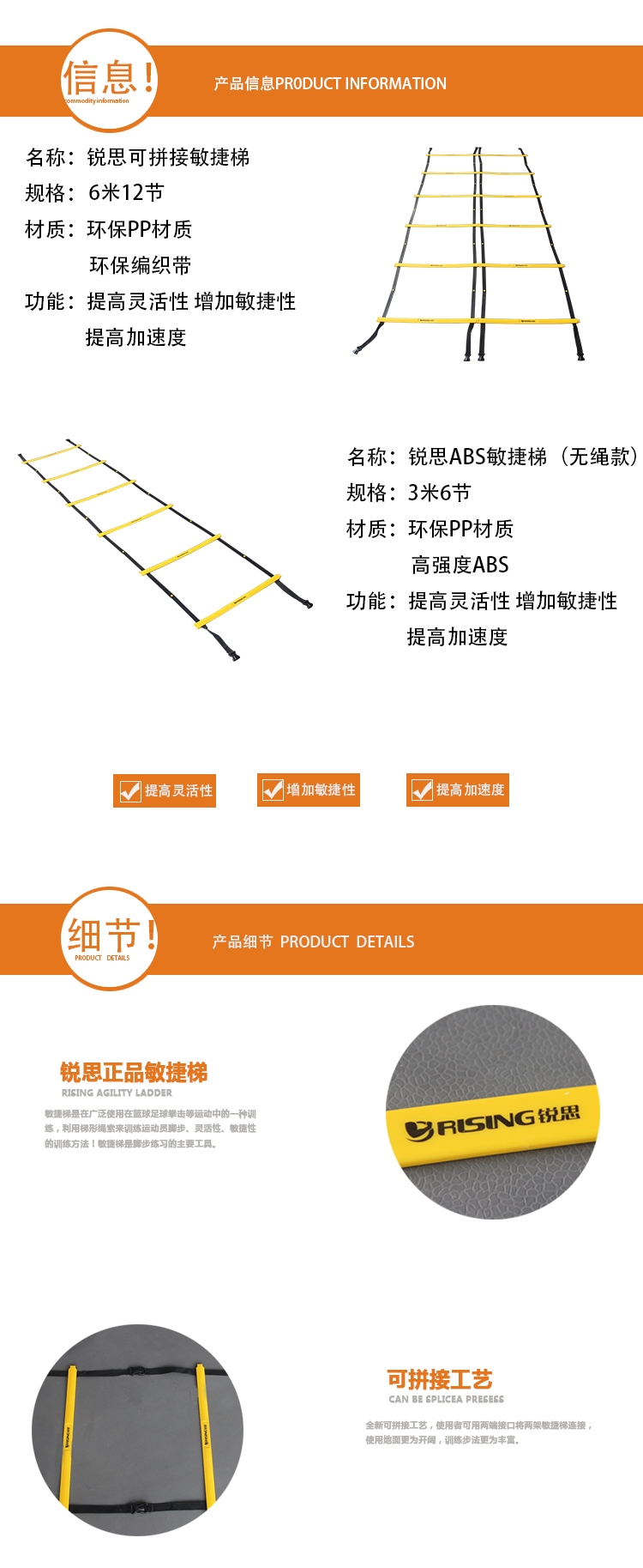 RISING锐思 敏捷梯 步伐训练跳梯 能量足球敏捷训练 软梯绳跳格梯 ABS材质