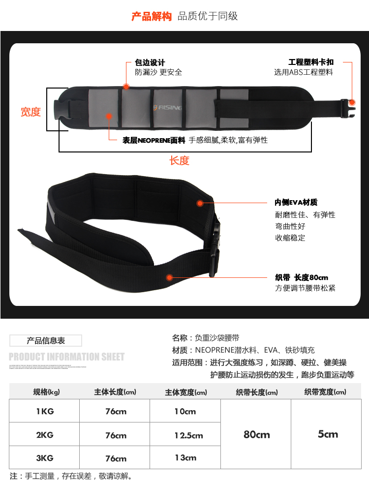 规格:1kg/2kg/3kg织带长80cm,宽5cm