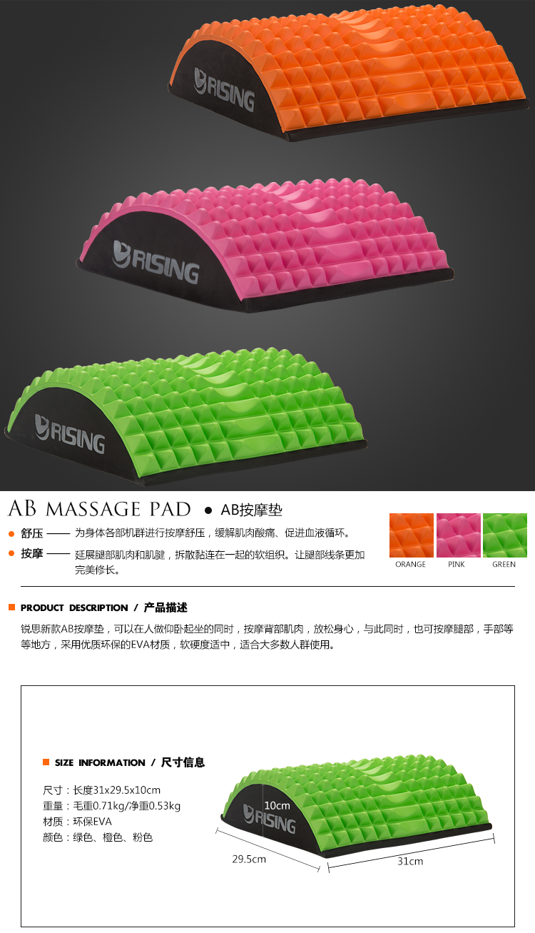 RISING锐思 AB按摩垫 仰卧起坐垫 背部肌肉按摩放松垫