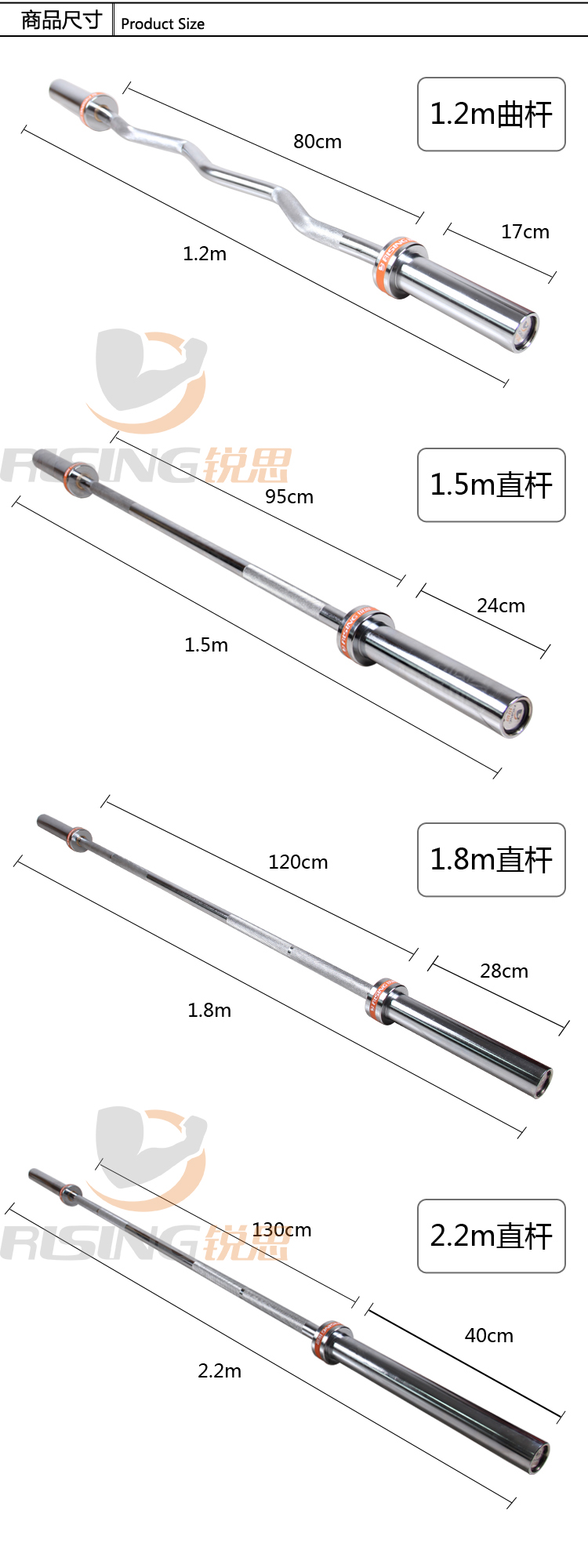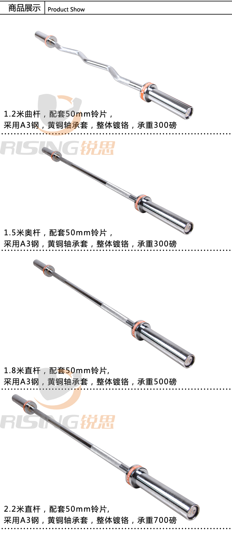 RISING锐思 环保无味CPU杠铃片 大孔径50mm三孔手抓片 增重片 1.2米A3钢曲杆,1.5米直杆,1.8米直杆,2.2米直杆