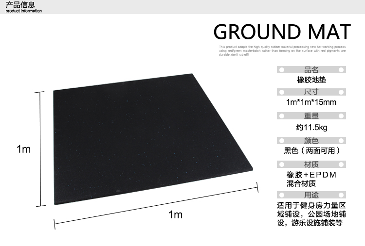 RISING锐思 健身房橡胶地垫 缓冲减震垫 杠铃哑铃耐摔垫力量区域铺设