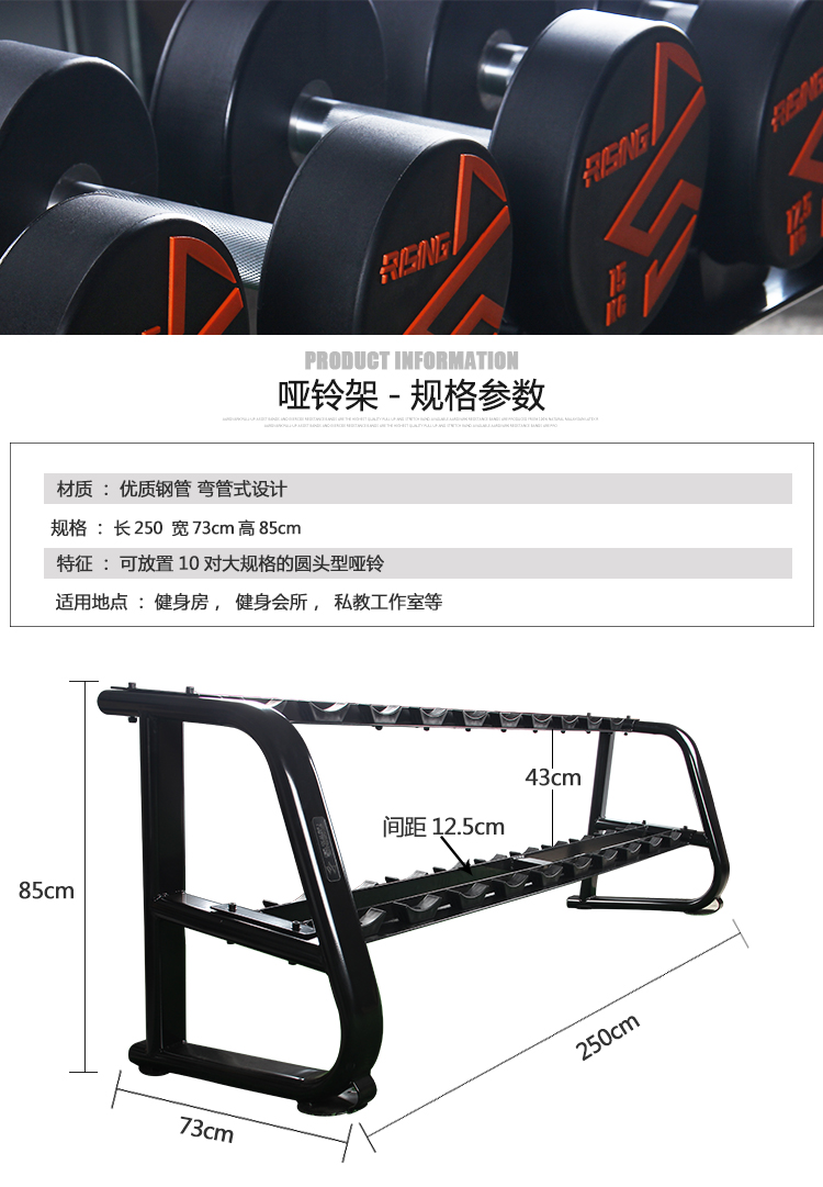RISING锐思 健身房商用哑铃架 圆头型哑铃存储架 双层